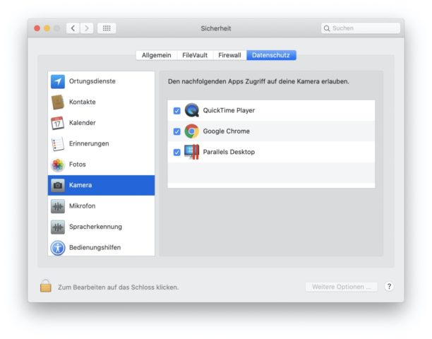 > „Systemeinstellungen“ und klicke auf „Sicherheit“ und dann auf „Datenschutz“. - Wähle „Kamera“ und oder „Mikrofon“ aus.
