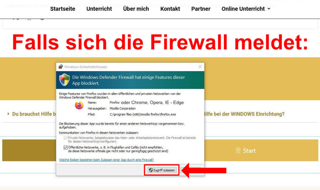 Bevor wir mit dem Online-Unterricht starten können, überprüfe Dein Gerät, ob es richtig konfiguriert ist. In den weiteren Tabs findest Du Hilfe bei der Einrichtung. Sollte es nicht klappen versuche es noch mit googlen. Viel Erfolg dabei und wir sehen uns beim Online-Unterricht.